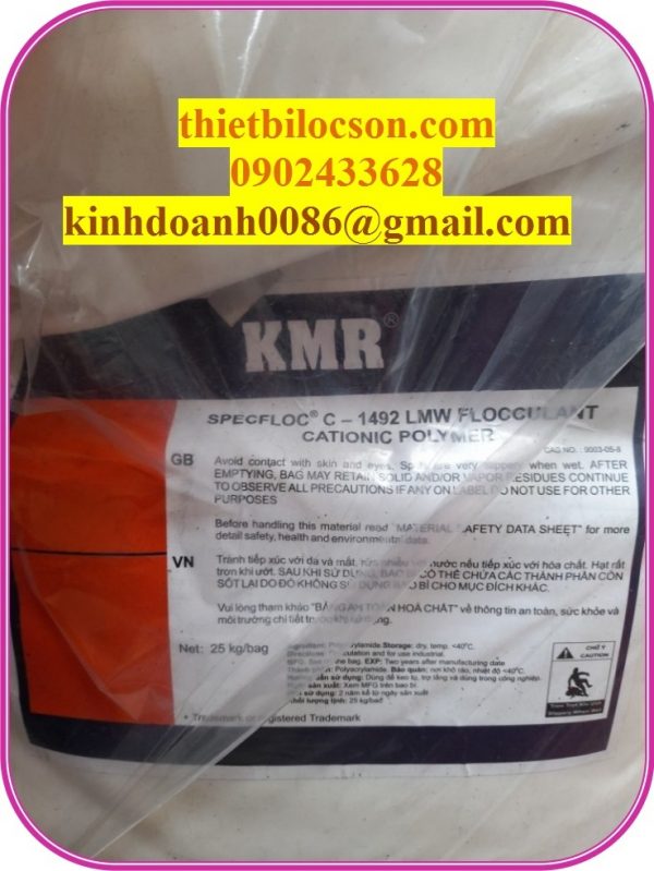 Polymer Cation KMR 25kg/1 bao (Polymer Cation C-1492 KMR) hay còn gọi là chất trợ keo hoạt động hỗ trợ đông tụ hoặc hỗ trợ lắng cho 1 số quá trình công nghiệp .